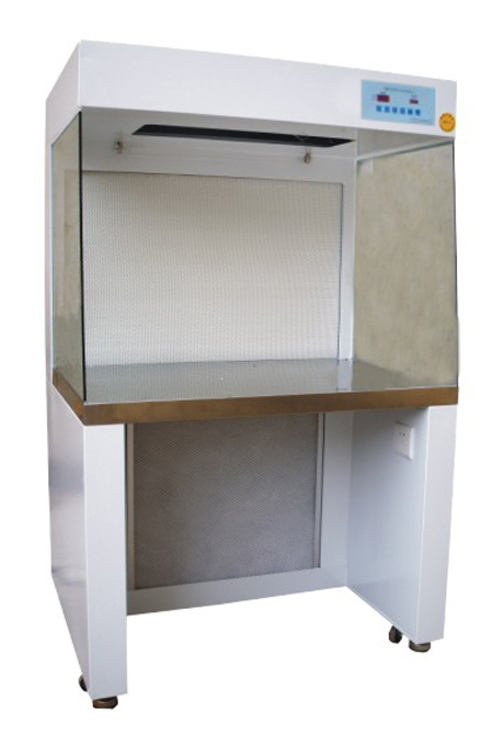 潔凈環(huán)境是在特定的空間內(nèi),潔凈空氣(進濾空氣)按設(shè)定的方向流動而形成的。以氣流方向來分,現(xiàn)有的凈化工作臺可分為垂直式,由內(nèi)向外式以及側(cè)向式。從操作質(zhì)量和對環(huán)境的影響來考慮,以垂直式較優(yōu)越。由供氣濾板提供的潔凈空氣以一個特定的速度下降通過操作區(qū),在大約操作區(qū)的中間分開,由前端空氣吸入孔和后吸氣窗吸走,在操作區(qū)下部前后部吸入的空氣混合在一起,并由鼓風(fēng)機泵入后正壓區(qū),在機器的上部,30%的氣體通過排氣濾板從頂部排出,大約70%的氣體通過供氧濾板重新進入操作區(qū)。為補充排氣口排出的空氣,同體積的空氣通過操作口從房間空氣中得到補充。這些空氣絕對不會進入操作區(qū),只是形成一個空氣屏障。