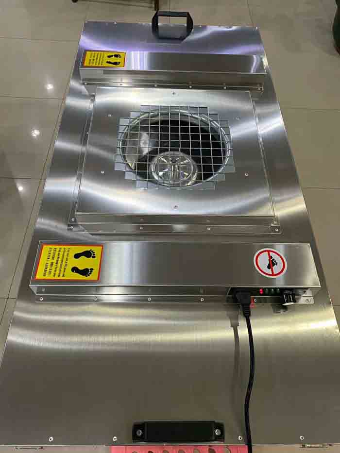 FFU高效過(guò)濾器可設(shè)有初、高效兩級(jí)過(guò)濾網(wǎng)。風(fēng)機(jī)從FFU高效過(guò)濾器頂部將空氣吸入并經(jīng)初、高效過(guò)濾器過(guò)濾,過(guò)濾后的潔凈空氣在整個(gè)出風(fēng)面以0.45M/S±20%的風(fēng)速勻速送出。它為不同尺寸大小,不同潔凈度等級(jí)的潔凈室、微環(huán)境提供高質(zhì)量的潔凈空氣。
