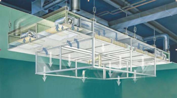 吊頂式層流罩目前廣泛用于電子、生物、醫(yī)藥、 食品、精密儀器等行業(yè)的無(wú)塵無(wú)菌操作環(huán)境,提供局部高潔凈度工作環(huán)境。