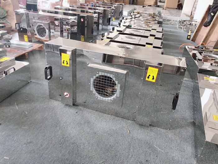 FFU風機過濾器之層流罩:層流罩是將空氣經風機以一定的風壓通過高效空氣過濾器后,由阻尼層均壓,使?jié)崈艨諝獬蚀怪睂恿餍蜌饬魉腿牍ぷ鲄^(qū),從而保證了工作區(qū)達到工藝所需的高潔凈度。