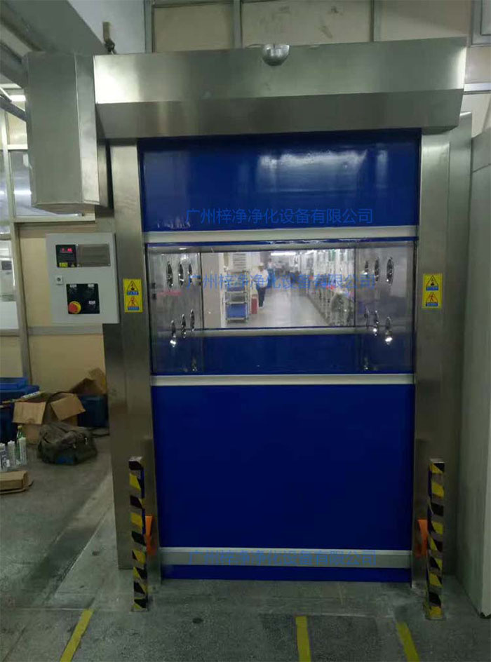 快速卷簾門貨淋室主要是方便推車、輸送帶傳遞物料時實現自動化控制、除塵的空氣凈化設備,快速卷簾門貨淋室前門和后門設置為互鎖狀態(tài)。