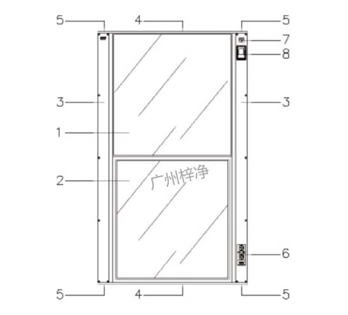 1固定窗(透明玻璃) 2活動窗(透明玻璃) 3左右堅框 ?4上下鏈接框? ?5安裝螺絲孔(位于上下連接框上下左右四個角點處)? ?6輕觸式開關(guān)控制板 ????7電源線接口 ????8電機飾蓋。