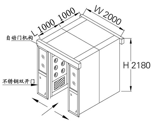 5、按設(shè)定的時(shí)間吹淋完后,內(nèi)門打開(kāi),人/貨走出;