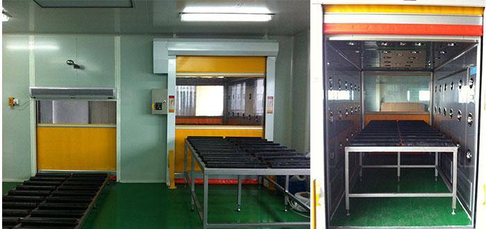 4、快速卷簾門流水線貨淋室(自動(dòng)感應(yīng)控制快速卷簾門),流水線可做成整體一條線,門下降時(shí)接近流水線,也可將流水線分成三部分;貨淋室和風(fēng)淋室定制作流水線主要有兩種形式
