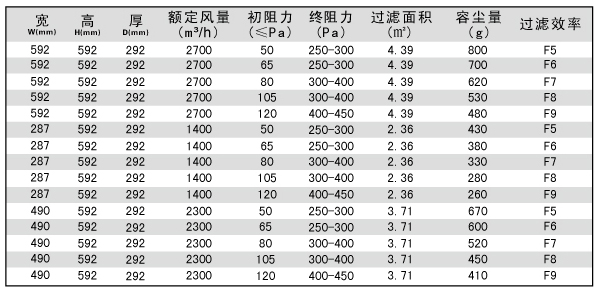 用戶選購(gòu)指南-化纖袋式中效過(guò)濾器參數(shù)